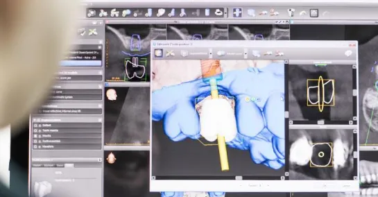 Digital implant planning involves the use of sophisticated software to meticulously plan the placement of dental implants. This process begins with a detailed digital scan of your oral structure, utilizing cutting-edge imaging techniques such as 3D Cone Beam Computed Tomography (CBCT). These high-resolution images provide a comprehensive view of the jawbone, surrounding structures and the precise location of nerves and sinuses, which is crucial for the accurate placement of implants.